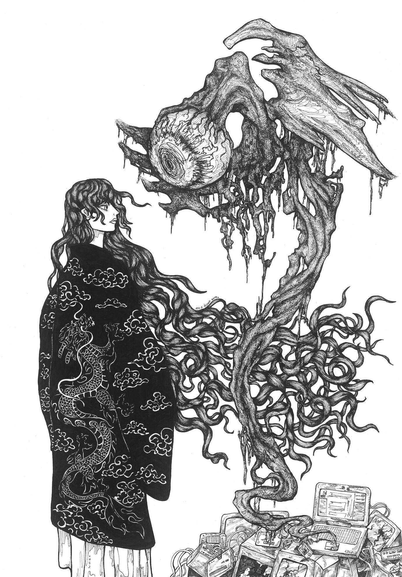 I am a hobbyist artists (hopefully for now) that adores horror art, but from time to time draw pretty things and animals.
